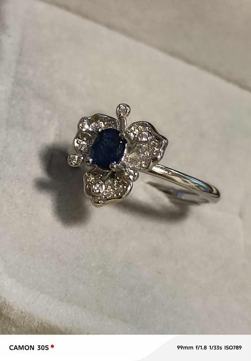 【925纯银】蓝宝石花朵戒指|优雅气质女士戒指|浪漫求婚/生日礼物Sapphire Flower Ring in Sterling Silver|Elegant Blue Gemstone Ring|Gift for Her